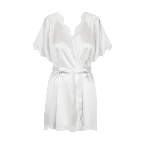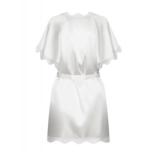 Εκθαμβωτικό σατέν κιμονό με κομψές λεπτομέρειες από δαντέλα στις άκριες, σε αθώο λευκό χρώμα. Εντυπώστε το ταίρι σας και συνδυάστε αυτό το πολυτελές κιμονό με τα αγαπημένα σας ερωτικά εσώρουχα ή φορέστε το πάνω στο γυμνό σας δέρμα για δημιουργία μιας πιο τολμηρής ατμόσφαιρας.