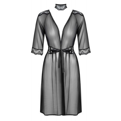 -Μαύρο, κομψό ημιδιάφανο κιμόνο & τσόκερ