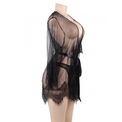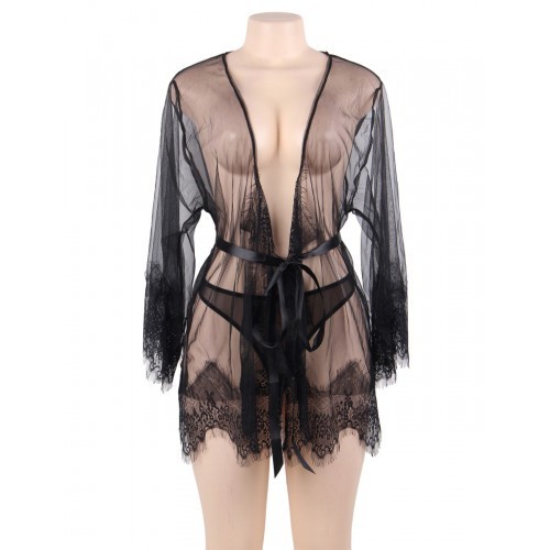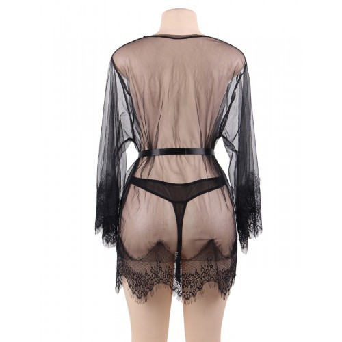 Transparent black kimono with matching string.