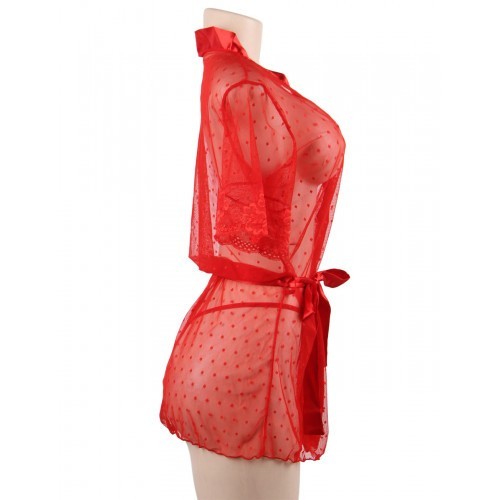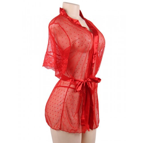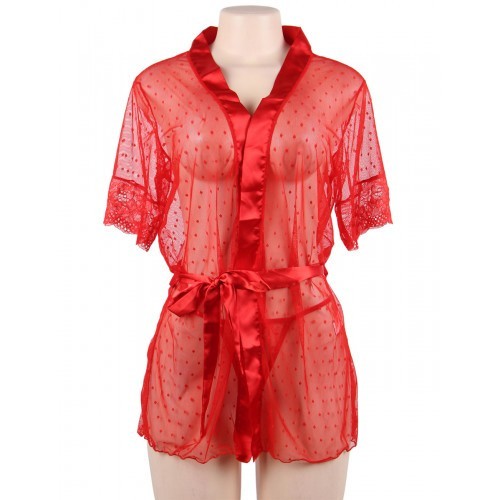 This light kimono delicately sexy addition to your wardrobe. Whenever you are in a mood of lazy day or you wants some lustful fun this rope will give you the sensational look. The transparent light mesh will let your partner to see your skin. Thanks to the mini hemline you can show off your legs.