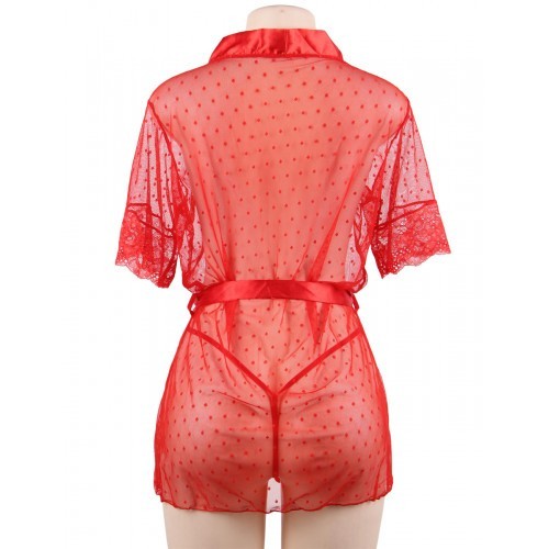 Sexy red mesh robe to wear over lingerie or bare skin