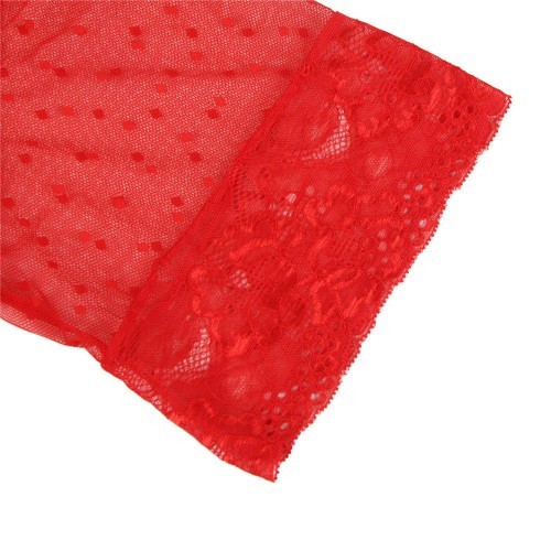Amazing red rope delicately sexy addition to your wardrobe. Whenever you are in a mood of lazy day or you wants some lustful fun this rope will give you the sensational look. The transparent light mesh will let your partner to see your skin. Thanks to the mini hemline you can show off your legs.