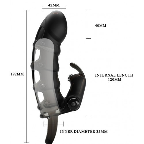 Κάνε το πέος σου ένα φυσικό δονητή με αυτό το μαλακό κάλυμμα πέους το οποίο προσφέρει 3 εκατοστά επιμήκυνσης και διαθέτει 10 διαφορετικές λειτουργίες δονήσεων, οι οποίες θα συνεπάρουν όχι μόνο εσένα, αλλά και το ταίρι σου. Ενώ το κάλυμμα φοριέται κατά την ερωτική επαφή, η δόνησεις μεταφέρονται στο σημείο ''κουνελλάκι'' του καλύμματος, προσφέροντας στην κλειτορίδα της γυναίκας απίστευτες αισθήσεις. Οι δυνατότητες του καλύμματος δεν σταματάνε εκεί όμως, ενώ λόγω των δονήσεων επιτρέπει στο πέος να είναι ακόμη πιο σκληρό εν στύση, δίνοντας σου την δυνατότητα να αντέξεις περισσότερο!