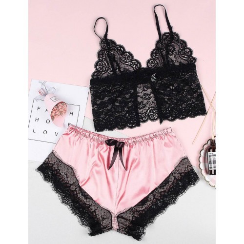 Comfortable satin short with delicate lace top. Sexy sleepwear with relaxed fit.