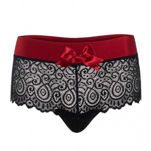 The bra has adjustable straps for better fitting. Set includes a charming black lace boyshort with red satin waist strap with flirty red bow (cotton gusset).