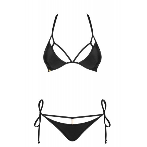 Απίστευτα ελκυστικό μπικίνι σε βαθύ μαύρο χρώμα με κομψή τιράντα η οποία κάθεται υπέροχα πάνω από το μπούστο, καθώς και πάνω στην κοιλιά, για γράμμωση του σώματος και ανάδειξη των καμπύλων σας. Φορέστε αυτό το μπικίνι και νιώστε πιο σέξυ όσο ποτέ στην παραλία!