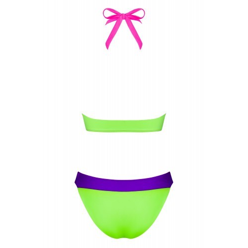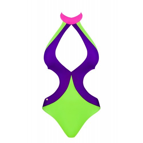Απίστευτα κολακευτικό μαγιό σε παιχνιδιάρικα χρώματα  με σέξυ άνοιγμα στο ντεκολτέ καθώς και στα πλευρά, εκτέθωντας το στήθος σας και προσφέροντας γράμμωση στις καμπύλες σας. Με τιράντα γύρω από την πλάτη και τιράντα η οποία δένει πίσω από τον λαιμό. Φορέστε αυτό το μαγιό και γίνετε το πιο σέξυ αξιοθέατο της παραλίας!